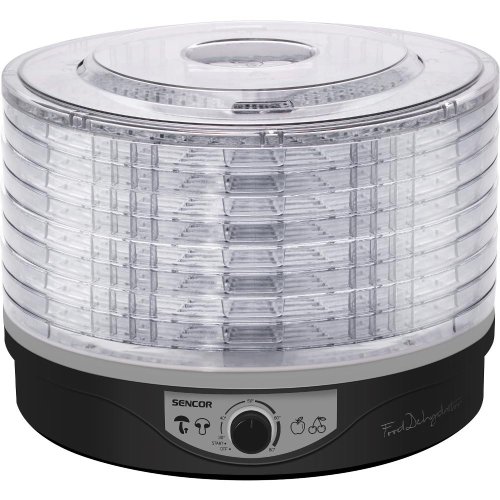 Sušička potravín vhodná na prípravu napríklad: sušeného ovocia (krížal, sliviek, marhúľ, banánov atp.) hrozienok sušenej zeleniny do polievok sušených paradajok sušených byliniek bylinkových čajov (mäta, lipový kvet, harmanček atp.) sušených húb do polievok a pokrmov dekorácia sušených tekvicových semienok sušených okvetných lístkov na vonné zmesi sušeného mäsa sušených rýb 9 sušiacich sít v základnej výbave (možnosť dokúpenia sady ďalších 4 sušiacich sít) Úspora miesta pri prevádzke s menším počtom sít (možno už s jedným sitom) Priemer sušiaceho sita: 3 Úžitková výška poschodia: 1,3 cm Nastaviteľná teplota 35-80 °C