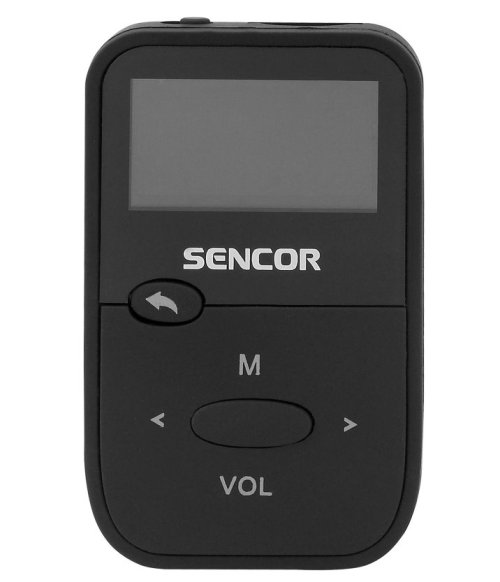 Sencor SFP 4408 BK 8GB MP3 prehrávač, čierny, 8 GB vnútornej pamäte, LCD dispej 1,1", slot pre micro SD kartu (max. 128 GB), FM rádio, podpora MP3 a WMA formátu, funkcia USB disku