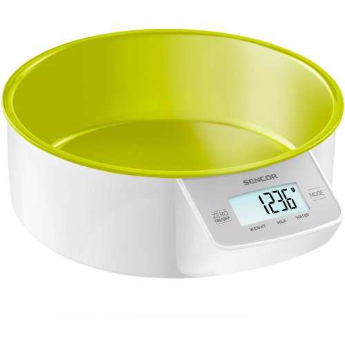 Kuchynská váha Praktická vyberateľná miska (objem 1000 ml) Veľký LCD displej (40 x 18 mm) s kontrastným podsvietením Výška číslic na displeji 13 mm Váživosť do 5 kg (rozlíšenie 1 g) Dotykové ovládacie senzory (beztlačidlová prevádzka s vysokou životnosťou) Funkcia nulovania hmotnosti nádoby (Tara) Funkcia postupného dovažovania Možnosť merania objemu vody a mlieka (ml/fl:oz) Možnosť voľby jednotiek (g/lb:oz) 4 senzory pre vyššiu presnosť váženia Indikácia slabej batérie a preťaženia Automatické vypnutie pri nečinnosti (po 2 minútach) Dodávané príslušenstvo: 2x 1,5V mikrotužková batéria (AAA) Rozmery (šírka x hĺbka x výška): 188 x 225 x 73 mm Vnútorné rozmery misky (priemer x výška): 170 x 50 mm Hmotnosť: 0,39 kg