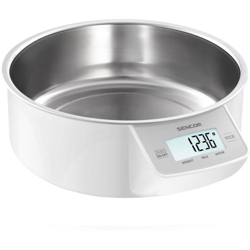 Kuchynská váha Vyberateľná miska z nerezu pre ľahkú a hygienickú údržbu (objem 1000 ml) Veľký LCD displej (40 x 18 mm) s kontrastným podsvietením Výška číslic na displeji 13 mm Váživosť do 5 kg (rozlíšenie 1 g) Dotykové ovládacie senzory (beztlačidlová prevádzka vysokou životnosťou) Funkcia nulovania hmotnosti nádoby (Tara) Funkcia postupného dovažovania Možnosť merania objemu vody a mlieka (ml/fl:oz) Možnosť voľby jednotiek (g/lb:oz) 4 senzory pre vyššiu presnosť váženia Indikácia slabej batérie a preťaženia Automatické vypnutie pri nečinnosti (po 2 minútach) Dodávané príslušenstvo: 2x 1,5V mikrotužková batéria (AAA) Rozmery (šírka x hĺbka x výška): 188 x 225 x 73 mm Vnútorné rozmery misky (priemer x výška): 170 x 50 mm Hmotnosť: 0, 39 kg