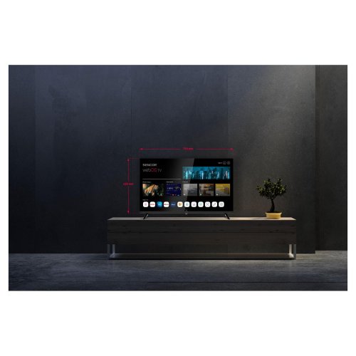 Napájanie, spotreba a rozmery: Napájanie: AC ~110-240V, 50/60 Hz Rozmery so stojanom: 47,1 x 71,9 x 19,1 cm Rozmery bez stojana: 42,3 x71,9 x8,1 cm Stojan bočné nohy Hmotnosť: 3,5