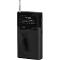 Prenosné FM / AM rádio Frekvencia FM prijímača: 87,5 - 108 MHz Frekvencia AM prijímača: 530 - 1600 kHz Analógové ladenie Teleskopická anténa pre príjem rádia Výstupný výkon 0,3 W RMS Výstup na slúchadlá Jack 3,5 mm Kompaktné rozmery Pogumovaný povrch Klip na opasok Napájanie: 2 x 1,5 V typ AAA (batérie nie sú súčasťou balenia) Rozmery: 61 x 122 x 27 mm Hmotnosť: 82 g