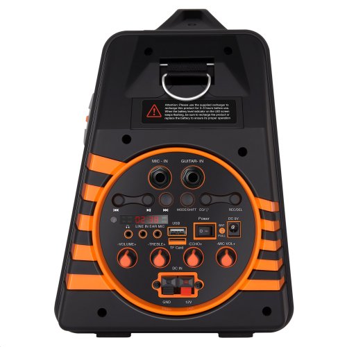 Príslušenstvo: dobíjací apatér (DC 9V, 1A), mikrofón s 5m káblom, - textilný pásik na prenášanie, 3,5mm AUX kábel, návod