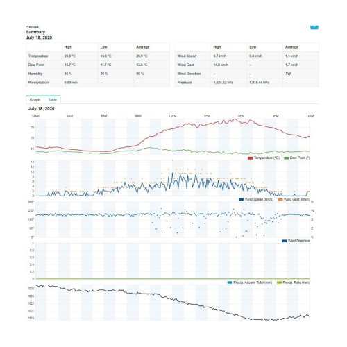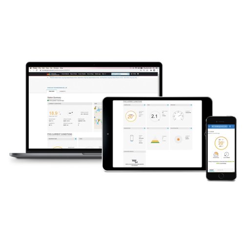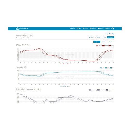 Podpora globálnych verejných meteorologických platforiem „Weather Underground" a „Weathercloud" Publikovanie údajov o miestnej meteorologickej stanici na verejných meteorologických platformách Podpora chytrých zariadení, online prístup k dátam a histórii TRUE BLACK Farebný LCD displej s uhlopriečkou 8,4" (21,4 cm) Predpoveď na 12 ~ 12 (slnečno, oblačno, zamračené, dážď, búrka, sneženie) Meranie vnútornej teploty a vlhkosti s indikátorom komfortu a vývoja Meranie vonkajšej teploty a vlhkosti s indikátorom vývoja Barometrický tlak v relatívnych a absolútnych hodnotách (hPa, inHg, mmHg) Rozsah merania vnútornej teploty: -5°C až+50°C vlhkosti: 1% až 90% RV Rozsah merania vonkajšej vlhkosti: 1% až 99% RV Index počasia pre pocitovú teplotu, chlad vetra, rosný bod a index teploty UV index (0-16) s UV indikátorom (ľahký, stredný, vysoký, veľmi vysoký, extrémny) Intenzita slnečného svetla (Klux, Kfc, Kfc, Kfc max./min . hodnôt v pamäti s uvedením dátumu a času Hodinový záznam za uplynulých 24 hodín Nastavenie výstrahy pre vnútornú/vonkajšiu teplotu a vlhkosť (nízka/vysoká) Nastavenie výstrahy (meteorologický index, pokles tlaku, vysoká rýchlosť vetra a veľké denné zrážky) Blikajúci indikátor výstrahy vysoká/nízka Zobrazenie času, slnko Nastavenie fázy mesiaca pre severnú alebo južnú pologuľu Výstraha pred poľadovicou a indikácia úrovne komfortu Poryv vetra alebo priemerná rýchlosť vetra (v mph, m/s, km/h, uzloch) Beaufortova stupnica a indikátor úrovne rýchlosti vetra Momentálny a dominantný smer vetra, meraného dažďového zrážok úhrnu zrážok (mm/inch) Automatické nastavenie času a dátumu pomocou WiFi (možnosť ručného nastavenia) Dátum a deň v týždni (deň v týždni v 7 jazykoch: EN, DE, FR, ES, IT, NL, RU) Zobrazenie stupnice teploty voliteľne v °C/°N 3 úrovne jasu podsvietenie Umiestnenie na stôl alebo na stenu Bezdrôtový senzor 7v1: Rýchlosť vetra, smer vetra, dažďové zrážky, teplota, vlhkosť, intenzita svetla a UV (súčasťou príslušenstva) TH senzor: SWS TH8600-9898-12500-16600 - teplota, vlhkosť TH8600-9898-12500-16600 / SWS T POOL PRO) Prenos na dlhú vzdialenosť medzi hlavnou jednotkou a senzormi 7v1 / TH - až do vzdialenosti 150 m (v otvorenom priestore) Podpora aktualizácie firmvéru Bezdrôtový senzor 7v1 - Frekvencia hlavnej jednotky: 868 MHz MHz Napájací adaptér hlavnej jednotky: DC 5 V / 1000 mA (súčasť príslušenstva), Spotreba: 5 W Záložná batéria hlavnej jednotky: 1 x CR-2032 3 V (súčasť príslušenstva) Batérie pre napájanie 7v1 senzora: 3 x 1,5 V veľkosti AA (batérie nie sú súčasťou balenia - odporúča 1,5 V veľkosti AA (batérie nie sú súčasťou balenia - odporúčame Lítiové batérie) WiFi štandard: 802.11 b/g/n, WiFi prevádzková frekvencia: 2,4 GHz Rozmery hlavnej jednotky: (š/v/h) 240 x 140 x 21 mm Rozmery bezdrôtového snímača 7v1: (š/v 136 mm Rozmery bezdrôtového snímača TH: (š/v/h) 58 x 125 x 19 mm Hmotnosť hlavnej jednotky: 454 g (vrátane batérie, bez adaptéra) Hmotnosť bezdrôtového senzora 7v1: 673 g (vrátane batérií) Hmotnosť bezdrôtového senzora TH: 144 g