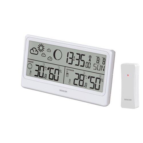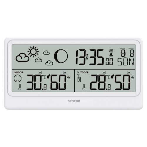 Pokročilá meteostanica SENCOR SWS 3600 sa hodí do každej domácnosti. Pred odchodom do práce alebo do školy vám a vašim deťom poradia „čo na seba“. Skontrolujete ukazovateľ vonkajšej teploty, pozriete sa na obrázkovú predpoveď počasia a budete mať jasno. Meteostanica je veľmi presná. Dokáže merať vonkajšiu teplotu v rozsahu od -40 °C do +70 °C (prípadne v °F), vnútornú teplotu, a dokonca vlhkosť od 0 % do 99 % (vonku aj vo vnútri). Maxima dokáže ukladať do pamäte. Hravo sa s ňou naučí zaobchádzať aj nemladší člen rodiny.