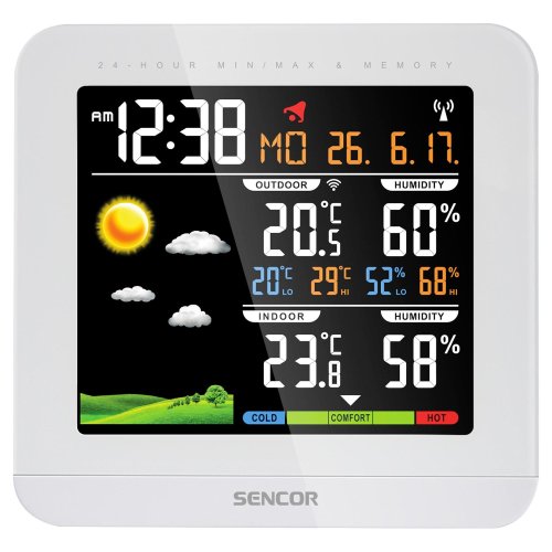 Meteorologická stanica Sencor s bezdrôtovým snímačom je ideálnym pomocníkom na sledovanie počasia ako vo vnútri, tak vonku. Vďaka ikonám predpovede počasia (slnečno, oblačno, dážď, sneh) budete mať vždy prehľad o aktuálnych podmienkach. Stanica meria vnútornú aj vonkajšiu teplotu v rozmedzí od -20°C do +50°C a vlhkosť od 20% do 99% RV. Ukladá maximálne a minimálne hodnoty za posledných 24 hodín, takže máte prístup k historickým údajom.