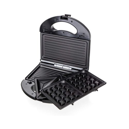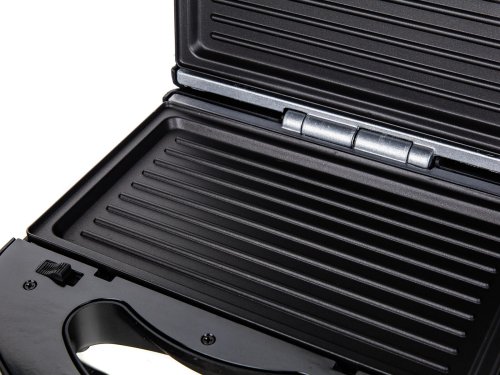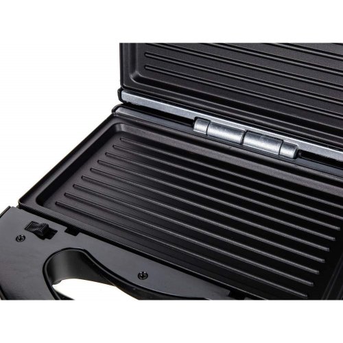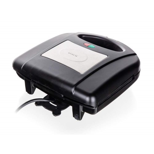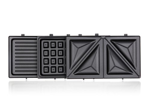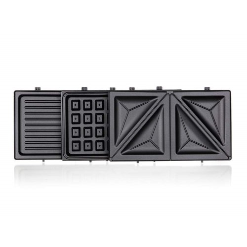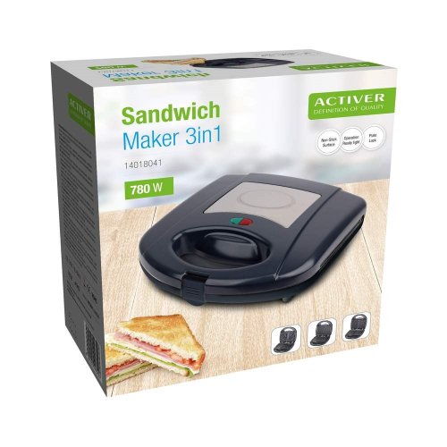 Sendvičovač 3 v 1 s príkonom 780 W v čiernej farbe, má nepriľnavý povrch, ktorý sa ľahko čistí. Obsahuje 3 páry pevných dosiek - sendvičovač, gril a vaflovač. Je otretý zámkom dosiek pre ľahšiu manipuláciu, má tepelne izolované madlo, kontrolku prevádzky/pripravenosti a protišmykové nožičky.