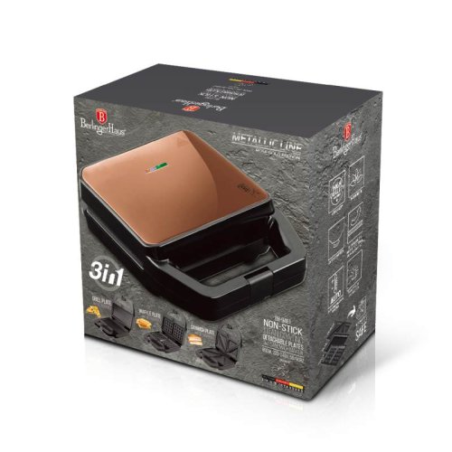 Sendvičovač a vaflovač s nepriľnavým povrchom 3v1 Rosegold Metallic Line BH-9461