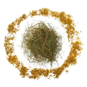 Zloženie: seno z lúk 98 % (môže obsahovať bojínok lúčny, ovsík vyvýšený, medyněk vlnatý, kostravu červenú, lipnicu obyčajnú, kostravu lúčnu, srhu ríznačku, psárku obyčajnú, ďatelina plazivá, ďatelina lúčna, krvavec tot zvončekov a ďalšie lúčne byliny), lístky nechtíka 2%.