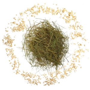 Zloženie: seno z lúk 98 % (môže obsahovať bojínok lúčny, ovsík vyvýšený, medyněk vlnatý, kostravu červenú, lipnicu obyčajnú, kostravu lúčnu, srhu ríznačku, psárku obyčajnú, ďatelina plazivá, ďatelina lúčna, krvavec tot zvončekov a ďalšie lúčne byliny), paštrnák 2%.
