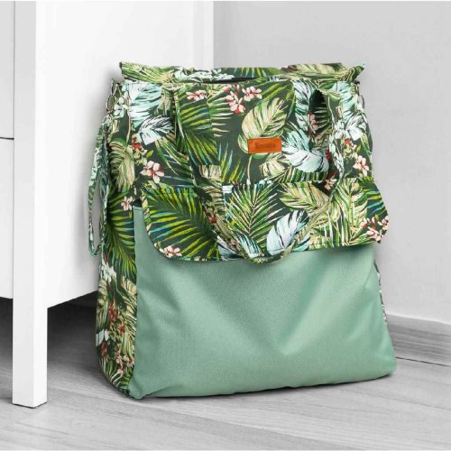 Veľká, priestranná taška pre mamu Sensillo, ideálna na prechádzku, nákupy alebo do nemocnice. Vďaka svojej veľkosti pojme všetko potrebné príslušenstvo. Predné vrecko uzavreté diskrétnym magnetom pojme všetky veci, ktoré by mali byť po ruke. Vnútro tašky je z polyesterovej podšívky. Nepostrádateľným prvkom tašky sú odolné farebné uši, vďaka ktorým je možné ju zavesiť na kočík.