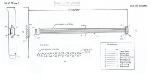 Vývod pre COM - sériový port RS232 zo základnej dosky na zadnú stranu PC. - konektor Canon 9M - interný konektor 2x 5pin - kábel 23cm
