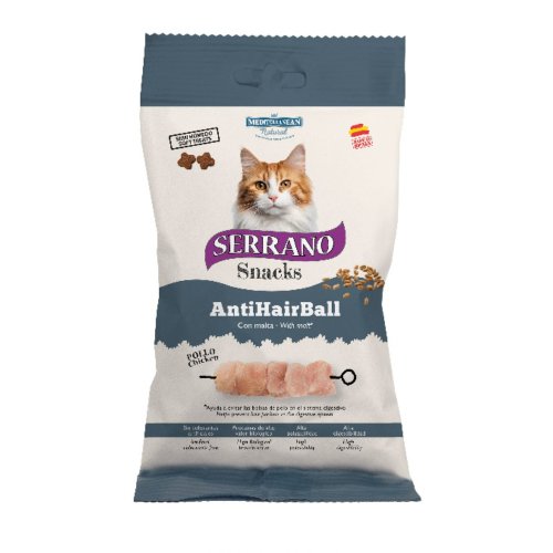 Mäkká, ľahko stráviteľná maškrta pre mačky s antihairball účinkom proti bezoárom s kuracím a ryžou.