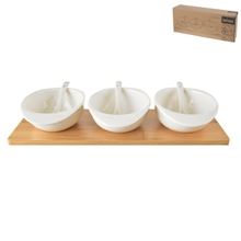 Servírovací set troch oválnych misiek s lyžičkou na tácke využijete na servírovanie pohostenia rodine alebo hosťom Vhodné na olivy, údeniny, syry, dipy, oriešky, zeleninu, marmelády, jogurty...