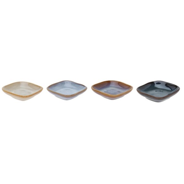 Moderná a farebná sada kameninových misiek, ideálna na servírovanie snackov, pochutín alebo dipov. Každá miska je jedinečná vďaka reaktívnej glazúre v trendy farbách.