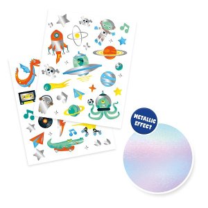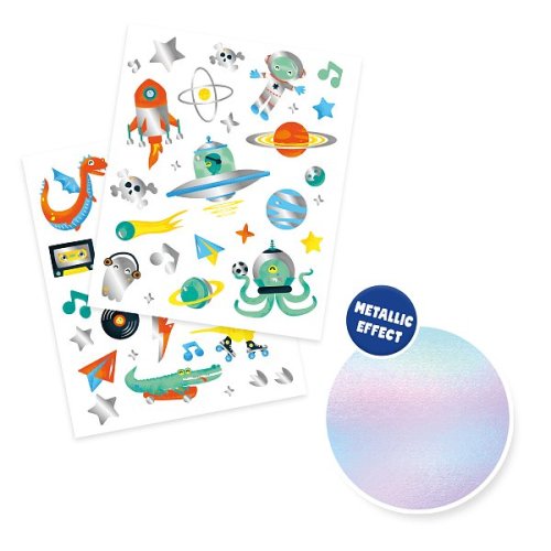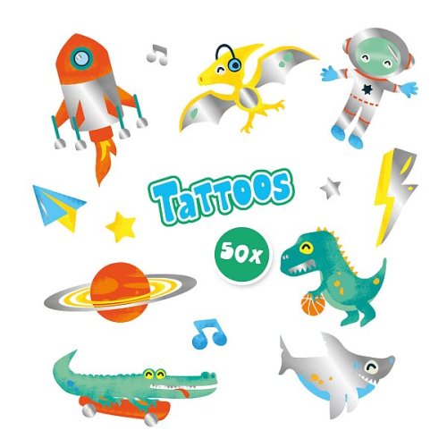 Úžasné tetovanie s metalickým efektom rozžiaria deťom deň. Či už sa tetovaním ozdobí na večierok, maškarný bál alebo len tak pre zábavu – zaručene zažiari! Tetovania sú bezpečné pre pokožku, ľahko sa nanášajú na pokožku a rovnako ľahko sa aj zmývajú. Sada obsahuje 50 metalických tetovaní s rôznymi veselými motívmi. Kozmeticky testované. Rozmery balenia: 20 x 15 x 0,5 cm. Vek: 3+