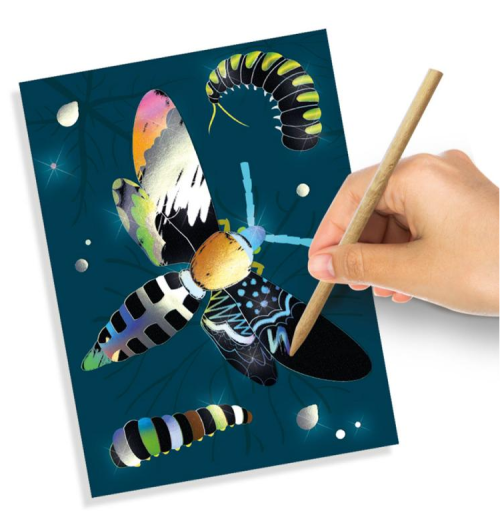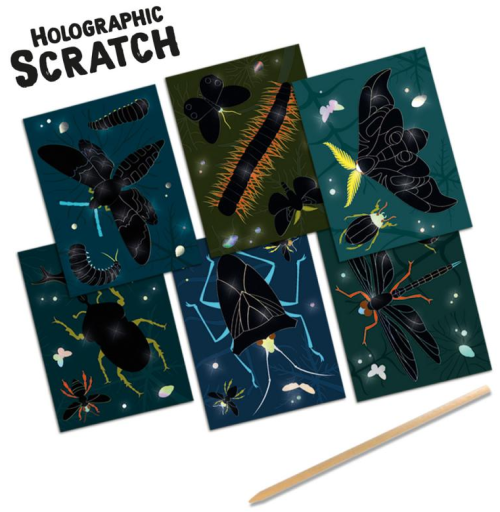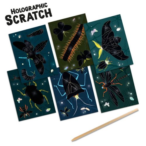 Zábava s farebným koncom! Škrabacie obrázky Ses sú výborným darčekom nielen pre kreatívne deti. Papier je potiahnutý čiernou vrstvou skrývajúcou podklad s holografickým efektom, ktorý z kresby urobí nevšedný pohľad. Postup: Vzory sú skryté. Jednoducho vyškriabte predkreslené časti škrabacím perom a vytvorte obrázok. Fantázii sa medze nekladú, preto je možné vyškriabať aj čierne miesta bez potlače a dodať obrázku osobitý rámček. Obsah balenia: 6 holografických vyškrabávacích kariet, 1 drevené vyškrabávacie pero. Vhodné pre deti od 3 rokov.