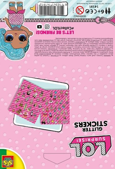 Zošity alebo školské učebnice si deti často nechtiac prehodia so svojimi spolužiakmi. Pokiaľ ich však označíte cool nálepkami z kreatívnej sady LOL ., vaše dieťa sa už len tak nepomýli a svoje veci si okamžite spozná. Sada obsahuje 2 archy s celkom 68 trblietavými samolepkami obľúbených LOL bábik, ich maznáčikov a jedinečných doplnkov. Samolepkami si môžu deti vyzdobiť nielen svoje zošity a učebnice, ale aj kalendár, obľúbenú knihu alebo napríklad mobil. Samolepky LOL . sú vhodné pre deti od 6 rokov. Kľúčové vlastnosti kreatívnej sady SES LOL . Trblietavé samolepky s bábikami LOL . 2 archy so 68 nálepkami Na vyzdobenie zošitov, knižiek alebo učebníc Vhodné pre deti od 6 rokov Rozmer balenia: 15 × 21 × 1,6 cm
