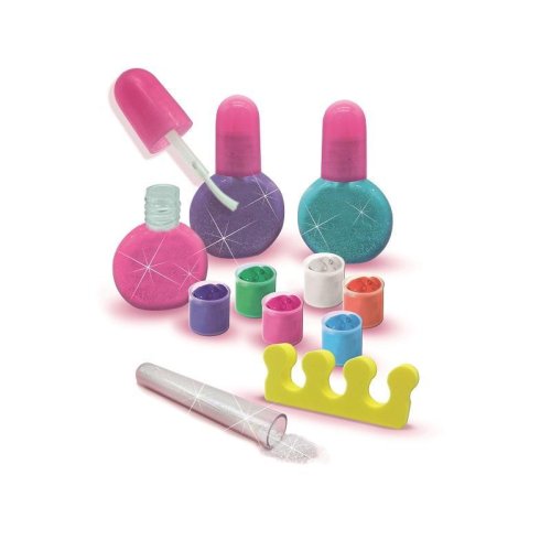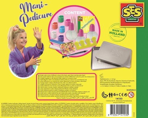 Oslň všetky svojou farebnou manikúrou! S touto úžasnou sadou SES na manikúru a pedikúru budete mať vždy krásne upravené nechty. Fľaštičku na lak naplňte farbou, ktorú chcete použiť svoje nechty. Do laku môžete pridať trblietky pre väčší lesk. Pomocou pilníka upravte svoje nechty a môžete začať lakovať. Nalakované nechty ozdobte ovocnými konfetami pre ešte farebnejší výsledok. Kozmeticky testované. Ľahko vyprateľné z tkanín. Sada obsahuje: 6 farieb na nechty, 3 fľaštičky na lak so štetcom, pilníček na nechty, dva oddeľovače prstov pri lakovaní nechtov na nohách, trblietky, ovocné konfety, pipetu, návod, luxusný plechový box. Vhodné pre deti od 6 rokov.
