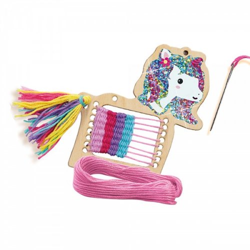 S týmito štyrmi drevenými mini tkáčskymi stavmi a šiestimi farebnými bavlnkami môžete upliesť malé roztomilé zvieratká. Nakoniec môžete zvieratká odzdobiť trblietavými samolepkami. Aké zvieratko si vyrobíte prvé? Sada obsahuje: 4 mini tkáčske stavy, trblietavé samolepky, 6 farebných bavlniek, 1 vyšívacia ihla, návod. Rozmer balenia: 20 x 20 x 4 cm. Vek: 6+