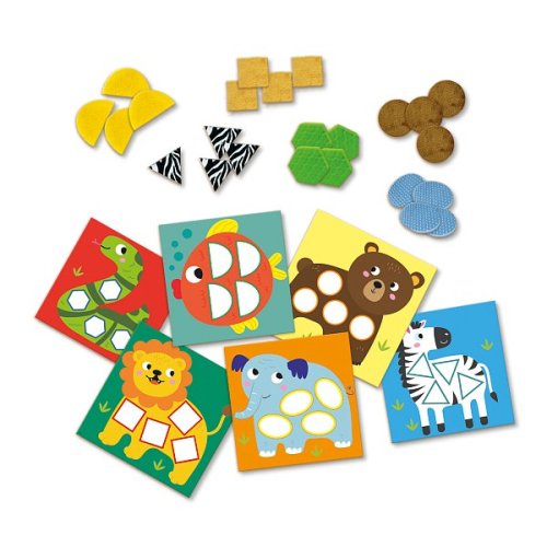 Objavte kúzlo farieb a tvarov s mozaikovými kartami Sensory. Vstúpte do sveta plného farieb a textúr s kartami My First – Sensory Mozaika. Táto hravá a vzdelávacia mozaiková hra je špeciálne navrhnutá pre batoľatá od 1 roka. S mäkkými, bezpečnými a ľahko uchopiteľnými mozaikovými dielikmi vytvoria aj tí najmenší svoje prvé umelecké diela. Rôzne štruktúry a jasné farby zaisťujú jedinečný zmyslový zážitok, ktorý stimuluje ich zmysly a rozvíja jemnú motoriku. Obsah sady: 6 mozaikových kariet so zvieratami, 8 penových mozaikových tvarov so štruktúrou, 8 plstených mozaikových tvarov, 8 mozaikových tvarov z kožušiny. Balené v krabičke. Rozmery balenia: 20 x 20 x 4 cm. Vek: 1+