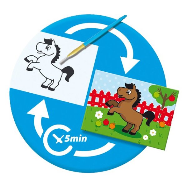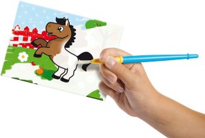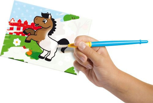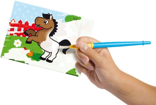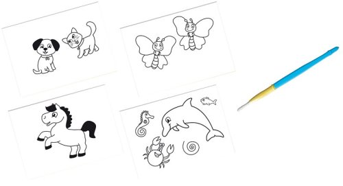 Objavte maľovanie so štetcom a vodou, ideálny pre kreatívnu hru bez neporiadku. Jednoducho navlhčite štetec, maľujte na kartičky a sledujte, ako farebné scény ožívajú. Sada je ideálna pre deti, aby si znova a znova užívali kreatívne činnosti. Znovu použiteľné kartičky vyschnú a vrátia sa do pôvodného stavu pre nekonečnú zábavu. Podporuje jemné motorické schopnosti a predstavivosť – ideálne pre malých prieskumníkov. Sada obsahuje 4 kartičky s motívmi zvieratiek a štetec. Štetec je bezpečný aj pre najmenšie deti, pretože jeho štetiny nevypadávajú. Balené v krabičke. Rozmery balenia: 20 x 30 x 4 cm. Vek: 1+