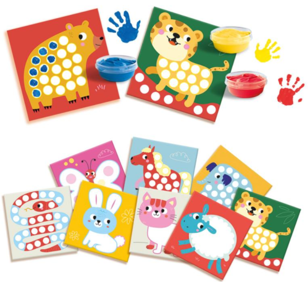 Kreatívne tvorenie pomocou detských prstíkov! Vytvorte svoje prvé umelecké dielo. Táto sada SES obsahuje tri prstové farby a desať farebných šablón so zvieratkami. Biele plochy na šablónach môžete ozdobiť ľubovoľným spôsobom. Zábavná aktivita pre rodičov s malými deťmi. Farby sú hypoalergénne a bez lepku. Hra rozvíja motorické zručnosti. Sada obsahuje: 10 šablón so zvieratkami, 3 prstové farby (žltá, červená, modrá). Vhodné pre deti od 1 roku.