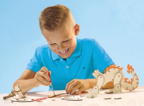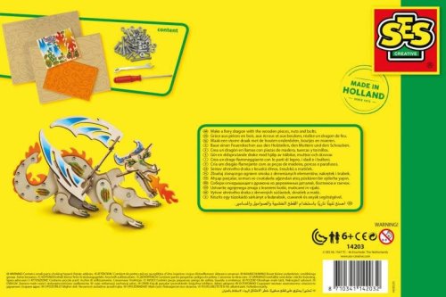 Zostavte si dreveného draka. Vďaka tejto konštrukčnej sade SES Creative si môžete vytvoriť draka z dreva. Postupujte starostlivo podľa pokynov v návode. Použite matičky, skrutky, drevené a penové doplnky. Nakoniec ozdobte svojho draka samolepkami. Súprava obsahuje:
