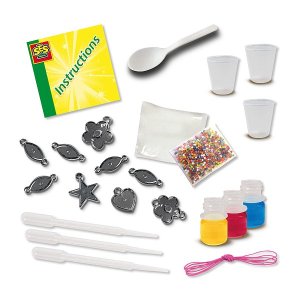 So sadou Easy Diamonds od SES Creative si môžete navrhnúť a vyrobiť náramky plné nádherných príveskov, ktoré si sami ozdobíte. Vďaka špeciálnemu prášku Easy diamond a farebným roztokom získa každý šperk trblietavý diamantový efekt. Naberte trošku diamantového prášku, vložte na strieborný podklad diamantu a nakvapkajte naň farbu, ktorá sa vám páči. Vďaka farbe prášok stvrdne a kúzlo je dokončené. Súprava podporuje kreativitu, zmysel pre farby a rozvoj jemnej motoriky. Sada obsahuje: 9 príveskov, diamantový prášok, 3 farebné roztoky, 3 odmerky, 3 pipety, elastická šnúrka, mix sklenených korálikov, lyžičku a návod. Rozmer balenia: 20 x 15 x 4 cm. Vek: 6+