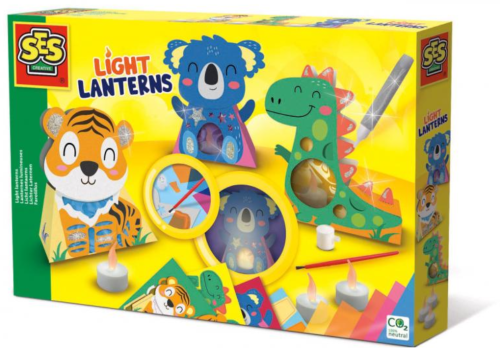 S touto sadou SES si môžete vyrobiť vlastné zvieracie lucerničky. Zvieratká jednoducho zložte, ozdobte farebnou fóliou a trblietkami. Vložte LED sviečku do každej lucerničky a pozrite sa, ako krásne svieti! Sada obsahuje: 3 LED sviečky (3x CR2032, batéria nie je súčasťou balenia), 3 zvieracie lucerničky, 5 farebná fólia, lepidlo, štetec, strieborné trblietkové lepidlo, návod. Vhodné pre deti od 5 rokov.