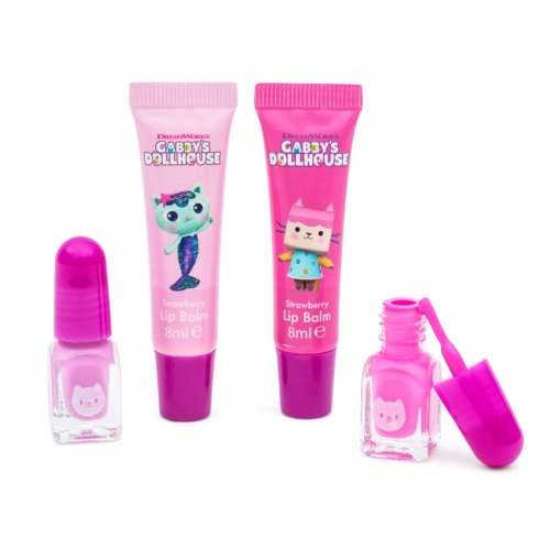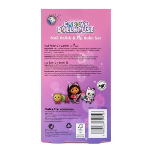 Darčekový set Gabby´s Dollhouse obsahuje 2× 2,5ml lak na nechty a 2× 8ml balzam na pery. Aplikujte na pery podľa potreby. Ak sa objaví podráždenie, prestaňte používať. Pri prvom použití otestujte na malej ploche pokožky, či sa neprejaví alergická reakcia. Neaplikujte na poškodenú, zapálenú alebo citlivú pokožku. Len na vonkajšie použitie.