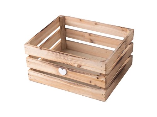 Súprava troch prírodných drevených debničiek s malým bielym srdiečkom uprostred s rozmermi 300x250x150mm, 250x200x130mm a 200x150x110mm je univerzálnym a praktickým riešením pre uskladnenie a organizáciu vašich vecí. Vďaka rôznym rozmerom debničiek sa hodí pre širokú škálu predmetov.