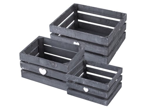 Táto sada troch modrých drevených debničiek je ideálna pre dekorácie, aranžmány a praktické uskladnenie drobností. Rôzne veľkosti (300 × 250 × 150 mm, 250 × 200 × 130 mm a 200 × 150 × 110 mm) umožňujú flexibilné umiestnenie a skladanie. Debničky je možné použiť ako kvetináče, organizéry alebo dekoratívne boxy. Modrý odtieň dodáva interiéru farebný a štýlový akcent, ktorý zútulní každý priestor.