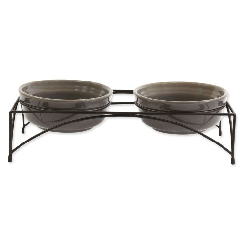 Keramické misky s potlačou labiek s kovovým stojanom.