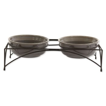 Keramické misky s potlačou labiek s kovovým stojanom.