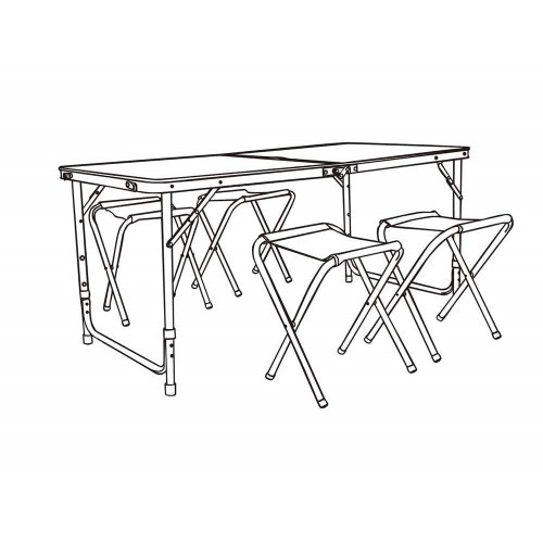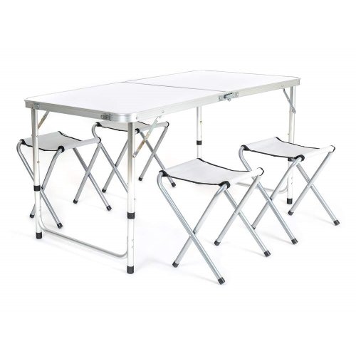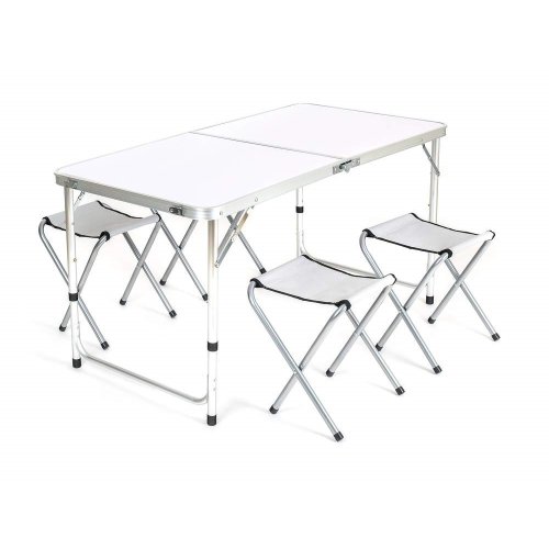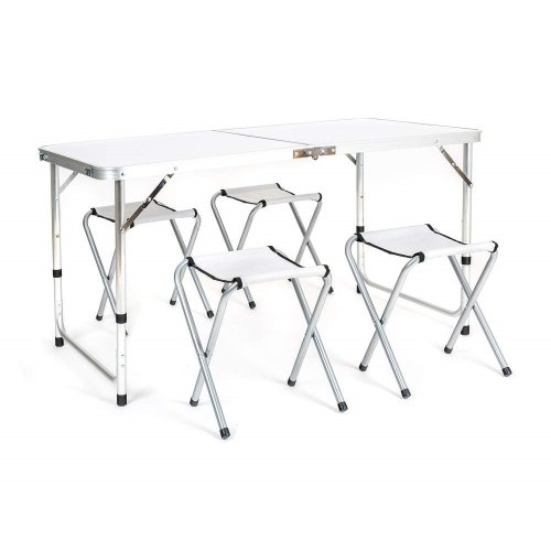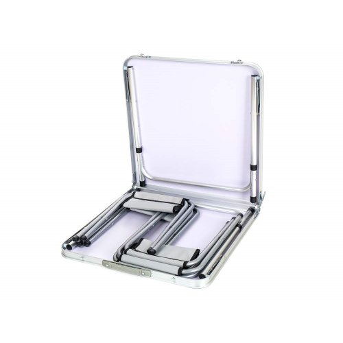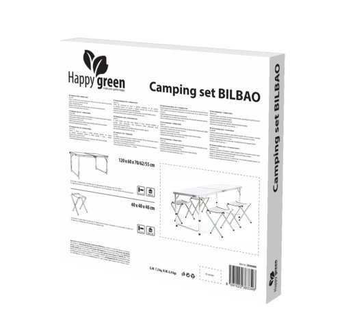 Kampingová sada BILBAO obsahuje stôl s konštrukciou z hliníka a 4 oceľové stoličky. Sada je vhodná na kemping, cestovanie, outdoor, ale aj na záhradu. Jej nespornú výhodu je zloženie do kufríka s rozmermi 62 x 7,5 x 63 cm pre ľahké prenášanie.