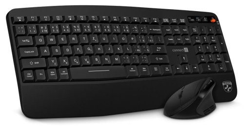 Klávesnica okrem klasických funkcií disponuje 12 multimediálnymi a funkčnými klávesmi, ktoré sa obzvlášť hodia do kancelárskeho prostredia. Príjemný ergonomický 3 polohový náklon klávesnice pomáha proti únave zápästia počas dlhých pracovných reláciách. Samozrejmosťou je jeden nano prijímač pre obe zariadenia na úsporu USB-A portov, ktorý má dosah až 10 metrov. K tomuto setu sú v balení dodávané originál CONNECT IT alkalické batérie (1x AA + 2x AAA).