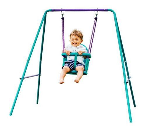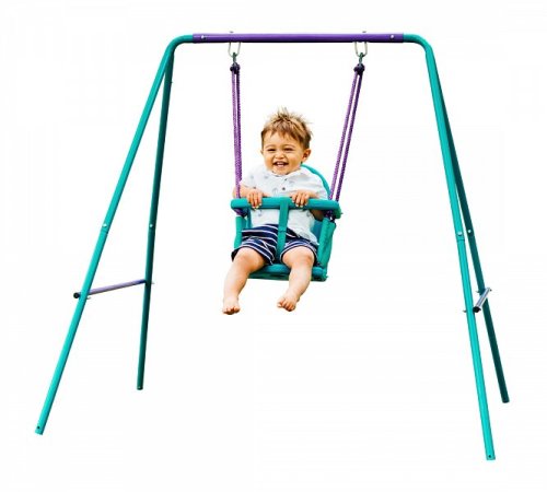 Sada kovových hojdačiek PLUM® rastie s vašim dieťaťom Obsahuje dve vymeniteľné sedadlá – detské sedadlo vhodné od 12 mesiacov s vysokým operadlom, bezpečnostným popruhom a T-popruhom proti skĺznutiu, a plastové hojdačky s výškovou konštrukciou. práškovým nástřikem, což zajišťuje dlouhou životnost a ochranu proti korozi. Součástí balení jsou zemní kotvy pro bezpečné ukotvení houpačky do země. Maximální nosnost je 45 kg. Houpačka je určena pouze pro venkovní a domácí použití. Používejte vždy pod dohledem dospělé osoby. Rozměry po sestavení: 181 x 171 x 164 cm. Minimální výška sedátka nad zemí: 200 mm (nižšia poloha), 350 mm (vyššia poloha).
