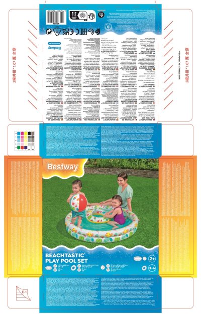 Set nafukovací bazénik, kruh a lopta Beachtastic™ je navrhnutý s ohľadom na malé deti od 2 rokov, ktoré si chcú užiť bezpečnú a zábavnú letnú vodnú aktivitu. Bazénik má priemer 122 cm a výšku 20 cm, takže ponúka dostatok priestoru pre malé deti na pohodlné hranie a osvieženie. Je vyrobený z odolného PVC materiálu, ktorý zaisťuje dlhú životnosť a bezpečnosť pri používaní. Bazénik má dvojvrstvovú konštrukciu, ktorá zaisťuje stabilitu a pevnosť, a jeho steny sú zdobené veselými letnými motívmi, ako sú plameniaky, ľadové nanuky, ovocie a tropické rastliny, čo zvyšuje atraktivitu pre deti.