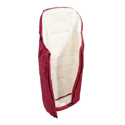 Nepremokavý fusak s rozopínaním vpredu a rukávnik na kočík z ovčej vlny do nízkych teplôt v rovnakej farbe.