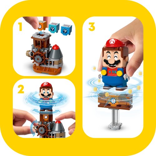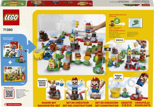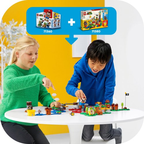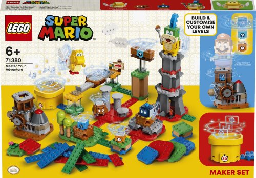 Malí stavitelia môžu so vzrušujúcou stavebnicou Set pre tvorcov – majstrovské dobrodružstvá (71380) upravovať svoj LEGO® Super Mario™ Štartovací set a rozširovacie sety, a vytvárať tak jedinečné úrovne. Nechýba zvláštny stroj na výber odmien, ktoré ponúka časová kocka a 2 kocky so špeciálnymi predmetmi. Modulárna stavebnica zaujme aj posuvnou plošinou, farebnými LEGO dielikmi, ktoré vyvolávajú u LEGO® Maria rôzne reakcie (figúrka nie je súčasťou), a špeciálne potrubie Dash 30, s ktorého pomocou je možné prestavovať a vytvárať nové úrovne. Kultový protivníci Súčasťou tohto LEGO Super Mario setu sú aj figúrky Larryho, Goomby, Bob-omba a Koopy Paratroopy. Omrknite tiež bezplatnú aplikáciu LEGO Super Mario s intuitívnymi nástrojmi na prezeranie modelov, množstvom tipov na kreatívne stavanie a oveľa viac. Zábavné súperenie Zberateľské sety od LEGO Super Mario prenášajú legendárnu postavu firmy Nintendo® do skutočného sveta a hodí sa ako pre skupinové zápolenie, tak pre hranie v jednom.