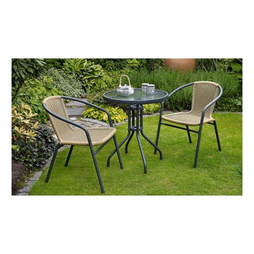 rozmery: stolička (Š x H x V) - 55 x 55 x 73 cm; stôl (priem. x V) - 60 x 71 cm materiál: kov, PH (ratanový vzor), doska stola z BMC plastu priemer kovovej konštrukcie: 24/16 mm hrúbka skla: 5 mm nosnosť stoličky: 120 kg