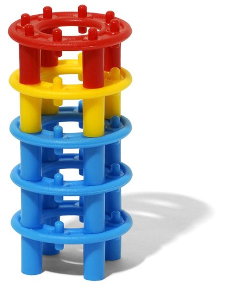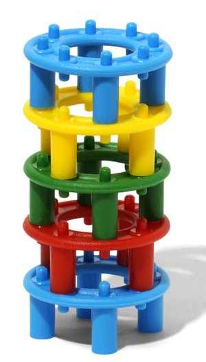 Krúžková stavebnica obsahuje 96 dielikov v 4 farbách. Je vhodná už pre najmenšie deti od 1 roku. Pomáha im precvičovať cit v prstíkoch a spoznávať základné farby.