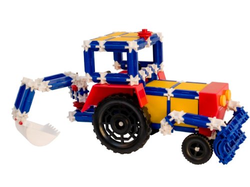 Stavebnica Seva Staviteľ obsahuje špeciálne dieliky, ktoré v základnej rade SEVA nenájdete - napr. Lyžicu, špeciálne doštičky či špeciálne tvarované modré dieliky. Môžete postaviť traktor, nakladač alebo pluh.