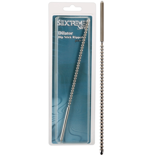 Dilator Dip Stick Ripped so stimulačnými korálkami. Zaoblená špička umožňuje jednoduchšie zavedenie do močovej trubice a následné vytvorenie dokonalej stimulácie a úžasných orgazmických pocitov. Časť na uchopenie má príjemne hladký povrch.
