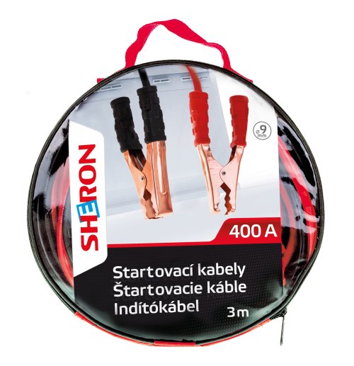 SHERON Štartovacie káble 400A sú kvalitné káble balené v praktickom, znovuuzatvárateľnom obale s uškom. Štartovacie káble s označením 400 A sú určené na núdzové štartovanie batérií s maximálnym prúdovým zaťažením 400 ampér. Údaj o prúdovom zaťažení batérie je uvedený priamo na batérii. Dĺžka káblov: 3 m.