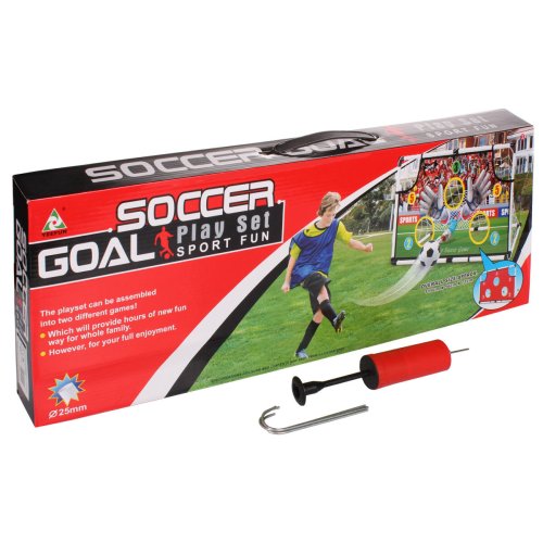 Prenosný futbalový gól Merco Shooter Kid zaistí vašim deťom zábavu na dlhé hodiny. Rozvíja pohybovú koordináciu, presnosť a zároveň pomáha u detí vytvárať tímového ducha. Konštrukcia bránky je vyrobená z plastu, je veľmi ľahká a ľahko sa prenáša. Zloženie celej bránky je jednoduché a nepotrebujete k nemu žiadne náradie - plastové rúrky sa zasúvajú do spojovacích dielov a tým sa vytvorí konštrukcia bránky s rozmermi 119 x 71 x 56 cm. Futbalová sieť sa na konštrukciu pripevňuje pomocou očiek, ktoré sú po jej obvode. Môžete použiť aj kotviace kolíky, ktoré slúžia na uchytenie bránky k zemi, čím zaisťujú jej pevnú pozíciu. Súčasťou balenia je strelecká plachta s otvormi na loptu, ktorú je možné pripevniť do bránky niekoľkými suchými zipsami. Balenie ďalej obsahuje gumovú nafukovaciu futbalovú loptu a pumpičku s integrovanou ihlou pre jej nafúknutie. Bránka je vhodná pre deti od 3 rokov. - rozmery 119 x 71 x 56 cm - hmotnosť cca 0,7 kg - plastové rúrky priemer 2,5 cm - 3 diery priemer 17,5 cm - nafukovacia gumová lopta 14 cm - strelecká plachta na suché zipsy