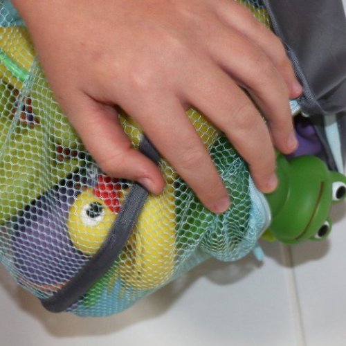 • v spodnej časti je zipsový uzáver, po otvorení ktorého je možné všetky hračky vysypať priamo do vane