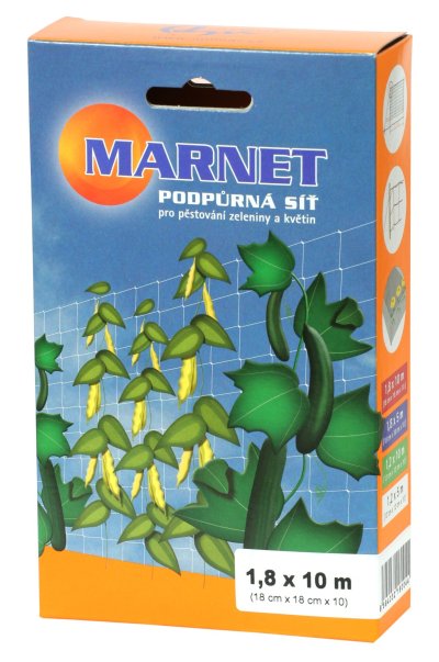 Veľmi pevné a praktické siete na pestovanie všetkej popínavej zeleniny, ako sú uhorky, fazuľa, hrach, paradajky a i. Vhodné sú aj na tvorbu opier pri pestovaní popínavých rastlín, ako klematisov alebo brečtanov. V horizontálnej polohe sa s úspechom používajú na pestovanie rastlín na rez. Pestovaná zelenina je na sieti prevzdušňovaná a preto sa výrazne odďaľuje napadnutiu rastlín plesňovými chorobami. Dostatočným prístupom slnka plody dozrievajú rýchlejšie. Rozmer: 1,8 x 10 m. Veľkosť ôk: 18 x 18 cm.