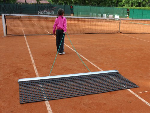 Sieťovačka Extra dvojitá s hliníkovou lištou je vhodná na údržbu antukových dvorcov. Tento model sieťovačky je ťahaný pomocou šnúry, tým sa antuka rovnomerne rozhrnie po celej ploche dvorca. Sieť má rozmery 200 x 80 cm. Je prirobená k hliníkovému profilu s výstuhou s hmotnosťou 2,5 kg. Šírka záberu: 2,00 m Dĺžka 80 cm Sieťovina: EXTRA Hĺbka: 80 cm Hliníkový profil s výstuhou: 2,5 kg